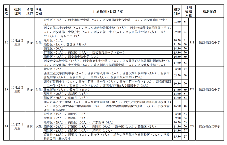 2021年度空軍招飛陜西省初選檢測日程安排