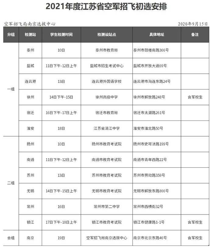 初選具體安排以本地招辦或?qū)W校通知為準(zhǔn),或關(guān)注“東部空軍招飛”微信公眾號(hào)了解,我們將逐省公布初選時(shí)間和地點(diǎn)。