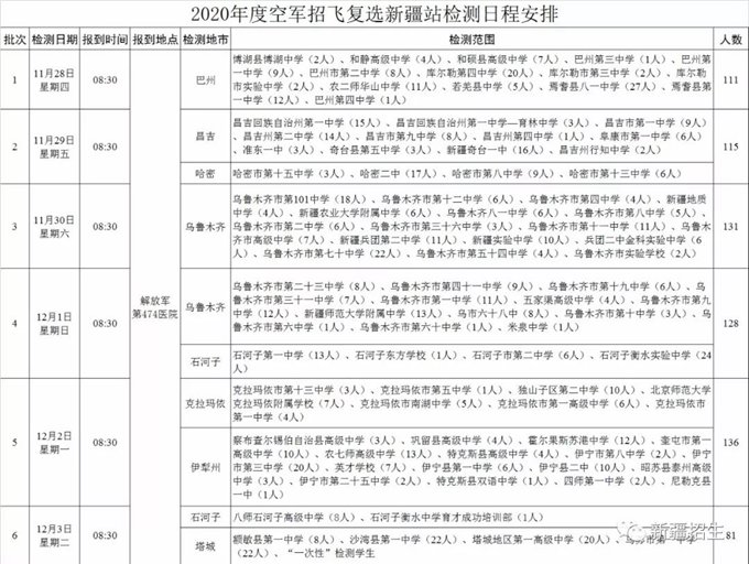 4.檢測對象:2020年度空軍招飛初選合格學生中推薦的學生。