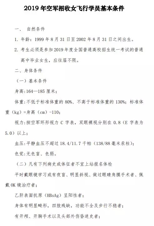 2.錄取符合殲強機選拔標準的考生(身高≤181cm、坐高≤96cm、雙眼裸眼視力C字表均在1.0以上)。