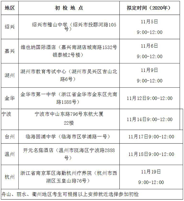 特別提醒:其他省市的初檢安排將陸續(xù)公布,請注意關(guān)注!