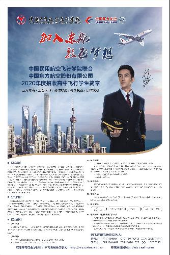 為適應(yīng)國家民用航空運(yùn)輸業(yè)發(fā)展需要, 20 20年,中國東方航空公司繼續(xù) 聯(lián)合中國民用航空飛行學(xué)院在我省招收飛行學(xué)員,現(xiàn)將招生簡章公布如下,請有意向的同學(xué)仔細(xì)閱讀后按要求參加報(bào)名。另:根據(jù)教育部辦公廳和中國民用航空局綜合司 2016年10月31日聯(lián)合下發(fā)的《關(guān)于進(jìn)一步規(guī)范民航招飛工作的通知》精神,2020年民航招飛最低錄取控制線文、理科均不低于450分,歡迎符合條件的同學(xué)踴躍報(bào)名。
