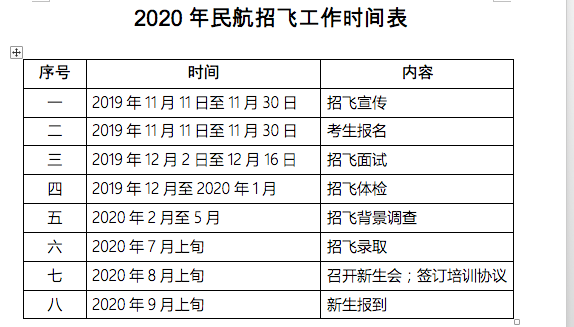 2020年民航招飛工作時間表