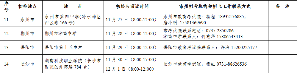 附1:2020年在湘民航招飛院校招收飛行學(xué)生初檢面試工作安排表