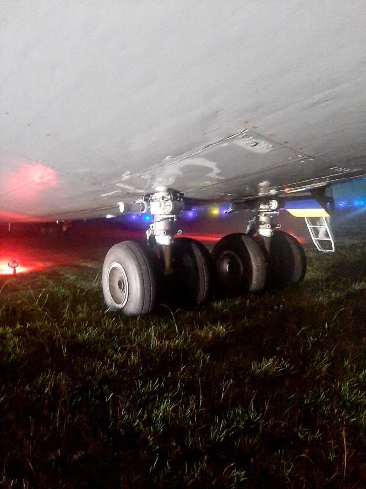 現(xiàn)場(chǎng)圖:安124降落時(shí)沖出跑道 無(wú)人受傷