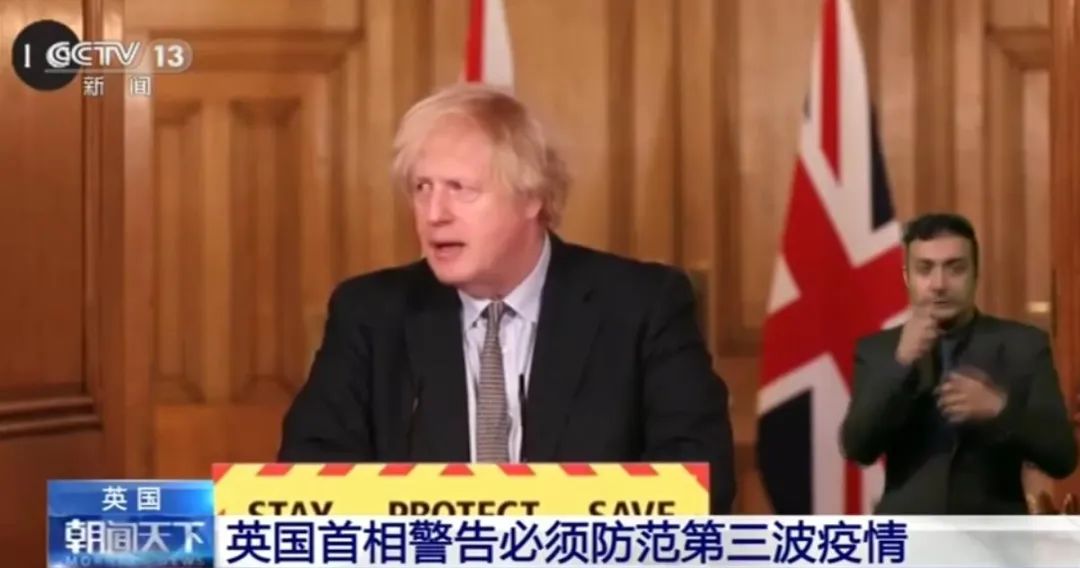 3月23日,英國首相警告必須防范第三波疫情。(央視新聞視頻截圖)