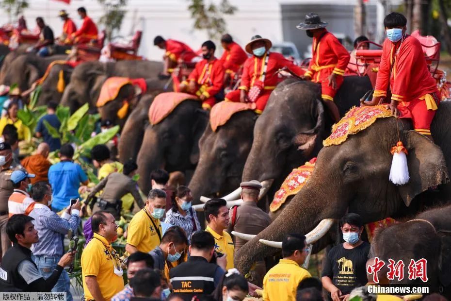 資料圖:當(dāng)?shù)貢r間3月13日,泰國大城府舉行大象日慶?;顒?。