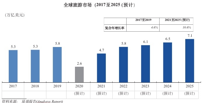 從宏觀市場來看,根據(jù)易觀報告,2025年,國內(nèi)旅游市場規(guī)模預(yù)計達到10.1萬億(1.6萬億美元)。全球旅游市場規(guī)模預(yù)計將于今年恢復(fù)增長,并將在2025年達到7.1萬億美元的規(guī)模。人均旅游消費方面同樣潛力巨大。2019年國內(nèi)人均旅游消費為158美元/次,遠低于美國游客的873美元。