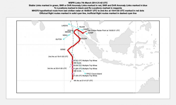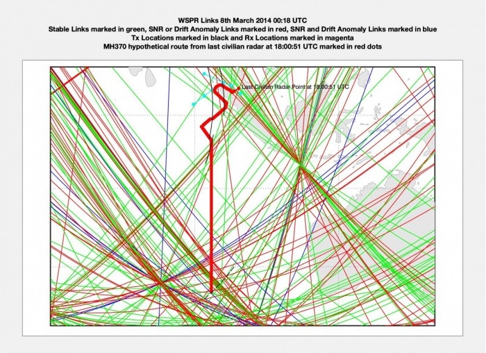 2014 年 3 月 8 日,馬來(lái)西亞航空 MH370 客機(jī)在從吉隆坡飛往北京的路途中,帶著 239 人失蹤至今。近日,由世界領(lǐng)先的 MH370 研究人員之一發(fā)表的新報(bào)告顯示,這架波音 777 客機(jī)的機(jī)長(zhǎng),在墜入南印度洋前實(shí)施了多次轉(zhuǎn)彎以躲避偵察。據(jù)悉,航空航天工程師 Richard Godfrey 在題為《用于搜索 MH370 客機(jī)的全球檢測(cè)與追蹤》一文中,介紹了一種被稱作 WSPR 的革命性新技術(shù)。