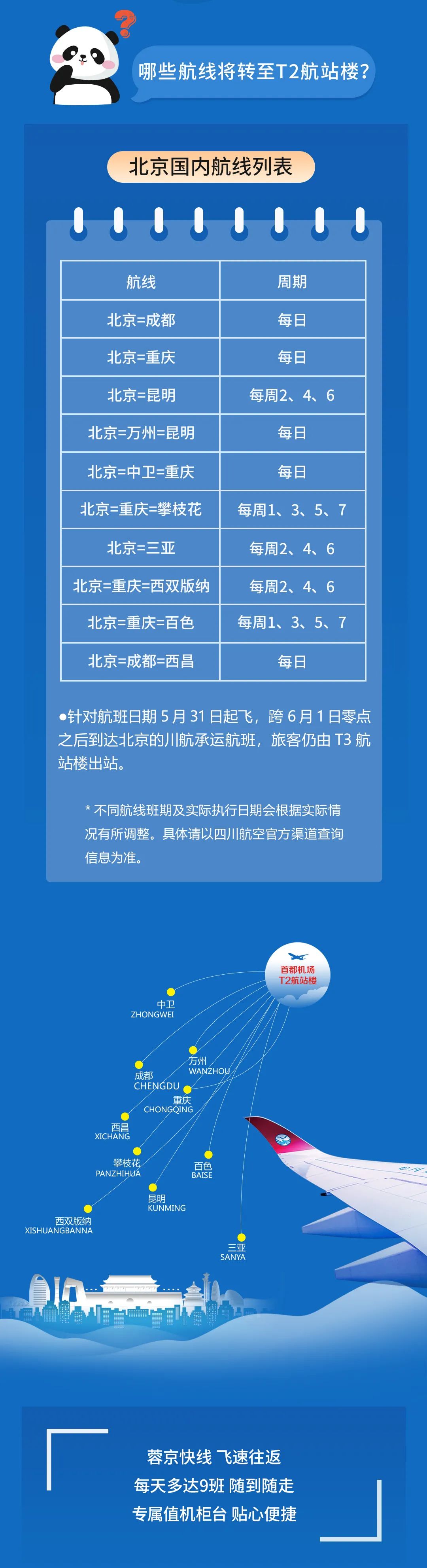 - 6月1日起 川航北京航線將由首都機(jī)場(chǎng)T3轉(zhuǎn)場(chǎng)至T2
