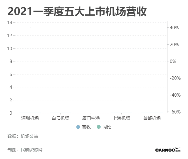 圖:2021年第一季度五大上市機場營收對比 制圖:據(jù)