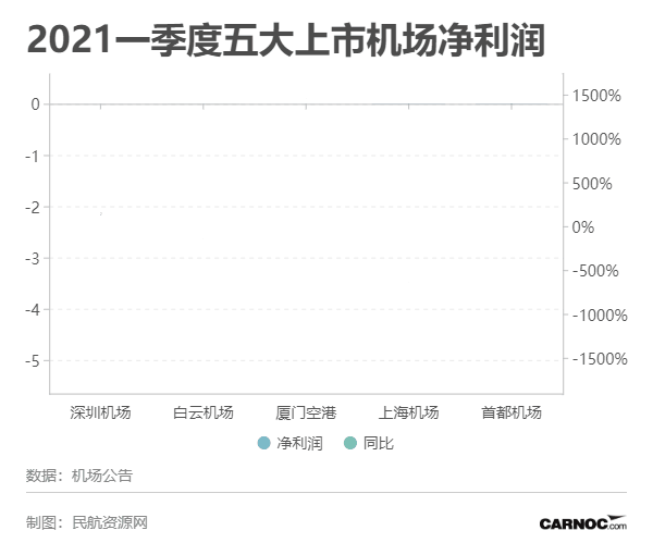 圖:2021年第一季度五大上市機場凈利潤對比 制圖:據(jù)