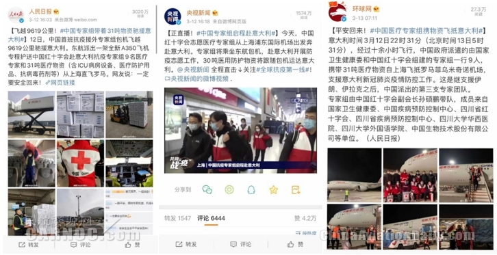 全球抗疫,東航人在行動。東航全力保障援外抗疫的微博和vlog視頻相繼被人民日報、央視新聞、環(huán)球網(wǎng)、人民視頻等微博多次轉(zhuǎn)載。同時,聯(lián)動海外社交媒體平臺和意大利媒體共同推廣,相關(guān)內(nèi)容在臉書、推特等平臺引發(fā)數(shù)十萬外國網(wǎng)友點(diǎn)贊中國,意大利大使館官方平臺引用,正面評論率超過90%。