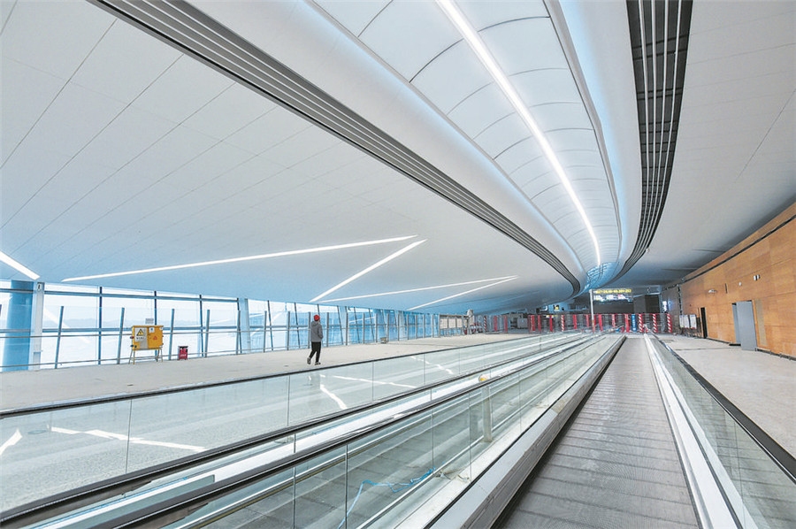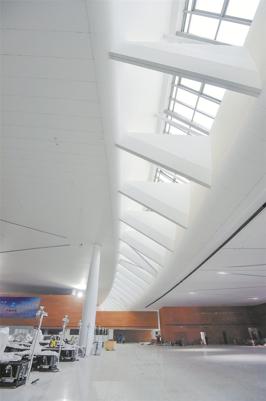 今年6月30日前,成都天府國際機場將投入使用,作為我國“十三五”規(guī)劃建設的最大民用航空樞紐機場項目,成都天府國際機場是全國唯一同時建設兩座航站樓的機場。目前兩座航站樓主體工程已經(jīng)完工,正在進行設備安裝和內(nèi)部裝修。13日,記者走訪了天府國際機場建設施工現(xiàn)場,在T1航站樓四層出發(fā)大廳看到,這里的天花板、地面、墻壁等裝修工程已經(jīng)完工,工人們正在安裝弱電設備、修整地面。現(xiàn)場物料碼放整齊,施工中的工人們緊張而有序地完成著手中的工作。