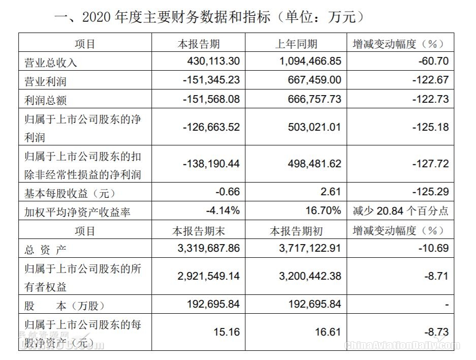 上海機(jī)場(chǎng)2020年虧損12.67億元