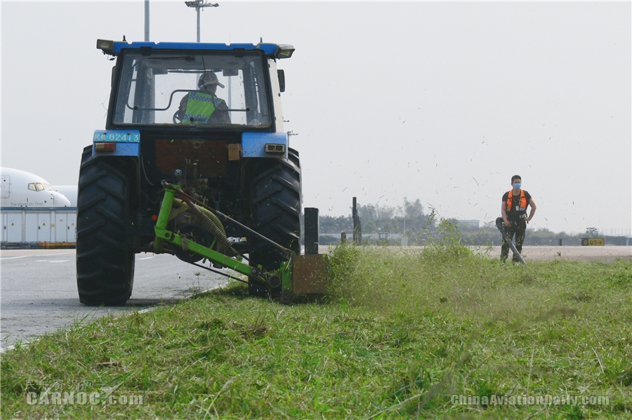 機(jī)場(chǎng)飛行區(qū)也要“理發(fā)”這是怎么一回事?原來,為了避免裸土揚(yáng)塵、防止水土流失、降低地表溫度、提供土質(zhì)區(qū)與跑滑道之間更明顯的視覺對(duì)比以提高安全性等多種原因,白云機(jī)場(chǎng)飛行區(qū)的土質(zhì)區(qū)保留了大面積的草坪。隨著春天雨水增多,植物開始復(fù)蘇,加上廣州水土氣候利于草種生長(zhǎng),飛行區(qū)的個(gè)別草種長(zhǎng)勢(shì)明顯,過高的草可能會(huì)影響助航燈光設(shè)備、通訊導(dǎo)航設(shè)備發(fā)揮作用。同時(shí),茂盛的草叢也會(huì)為鳥類提供適宜的棲息地和豐富的昆蟲草籽食物,影響機(jī)場(chǎng)航空鳥擊防范工作成效,因此必須定期給飛行區(qū)“理發(fā)”,及時(shí)割掉超過限制高度的草叢。