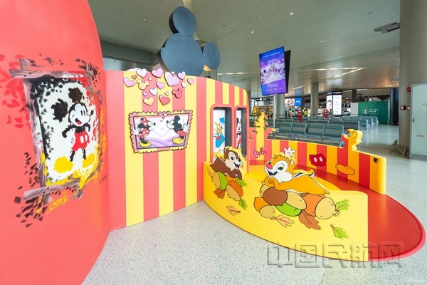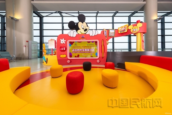 這個(gè)游樂區(qū)由上海虹橋國(guó)際機(jī)場(chǎng)與上海迪士尼度假區(qū)聯(lián)手打造,位于虹橋機(jī)場(chǎng)T2候機(jī)區(qū)南側(cè)指廊56號(hào)登機(jī)口附近。游樂區(qū)共有三大功能區(qū)塊,分別對(duì)應(yīng)米奇標(biāo)志性的圓臉和兩只大耳朵。其中,“臉部”是電視觀影區(qū),設(shè)有巨大的電視屏幕,兩只大“耳朵”則是拍照游樂區(qū)和閱讀休憩區(qū)。觀影區(qū)會(huì)播放各類適合闔家共同欣賞的趣味內(nèi)容,閱讀休憩區(qū)為小旅客們準(zhǔn)備了關(guān)于米奇、米妮和唐老鴨的中英雙語(yǔ)故事,拍照游樂區(qū)給小旅客及家人提供與迪士尼主題裝置互動(dòng)留影。