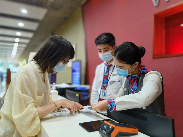 圖:工作人員協(xié)助旅客辦理手續(xù) 攝影:珠海機場