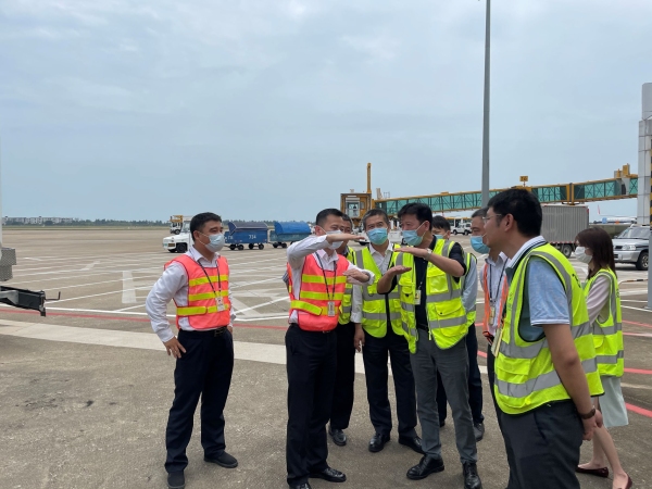 圖:珠港公司值班領(lǐng)導前往寬體機保障現(xiàn)場檢查保障情況 攝影:珠海機場